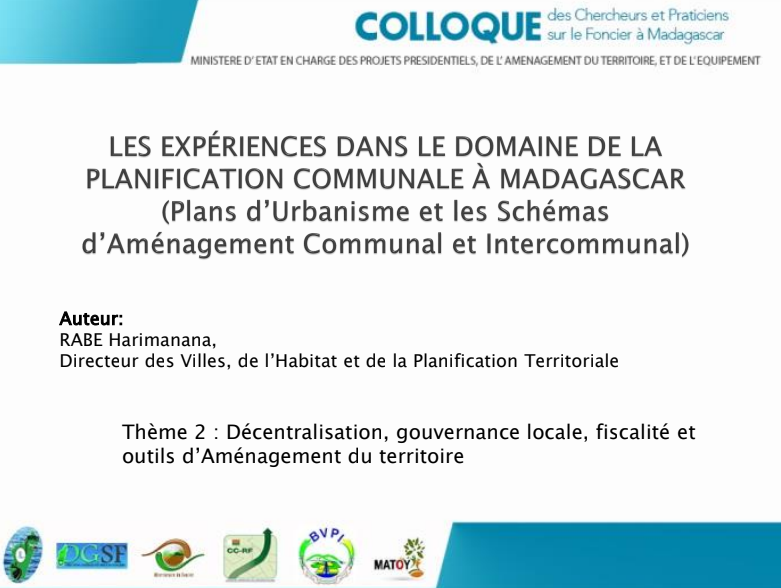 Catégories : Aménagement du Territoire, Gestion foncière décentralisée, Gouvernance, Planification Territoriale, Social